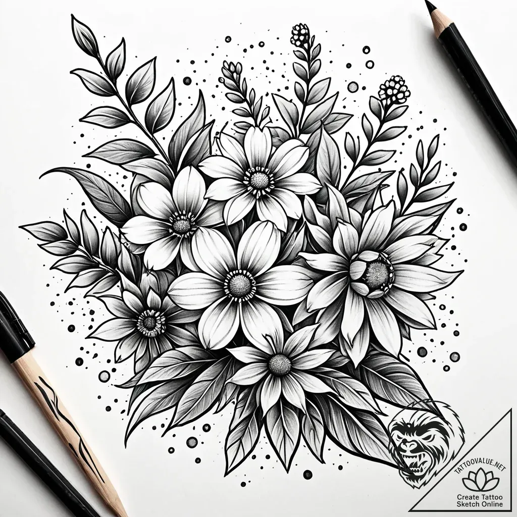 Tat tattoo sketch, wildflower bouquet painted… – style Jaeger Simple – tattoo sketch (02.01.2026 02:56)