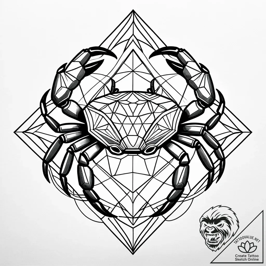 - Original User Request (RU): tattoo design a cancer crab, drawn with loose, expressive lines, giving it a playful or shy feel., artistic tattoo sketch, on a clean white paper, isolated, bold outlines, thick lines, heavy linework, geometric tattoo style, sacred geometry patterns, mandalas, abstract shapes, symmetrical, black and white sketch, monochrome, greyscale tones