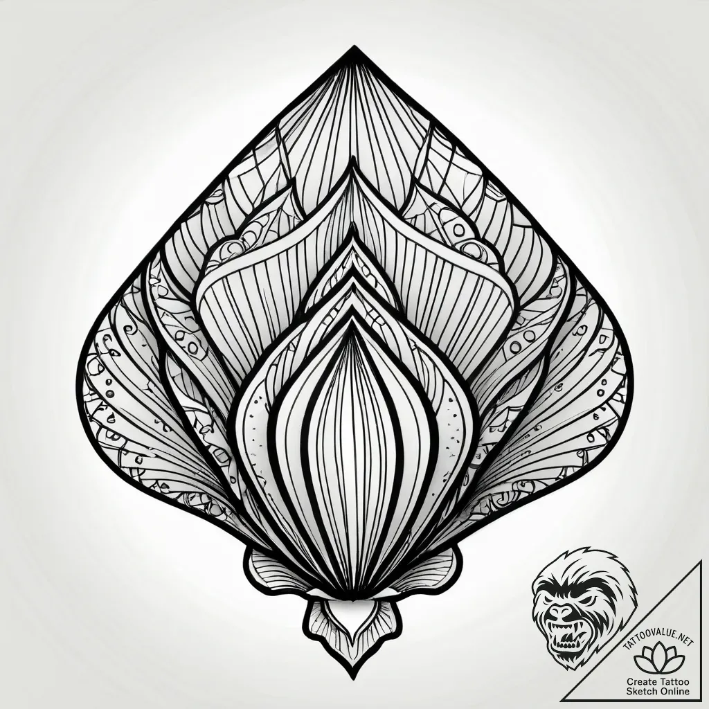 This exquisite tattoo sketch unfolds like a celestial bloom, its petals meticulously crafted with delicate dotwork and fine line art. The composition evokes a sense of hidden beauty, reminiscent of a precious secret held within a protective shell, rendered in a muted palette that whispers tales of vintage charm and timeless elegance.