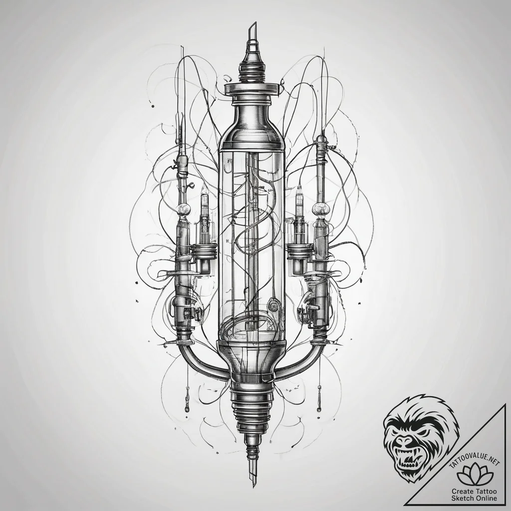 This stylish design inspired by “Tattoo design a futuristic laboratory with glowing tubes and wires realistic.” was prepared especially for you at tattoovalue.net.