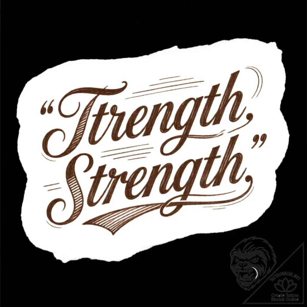 This sepia-toned ink sketch is a testament to the power of the word, rendered in a delicate, fine-line illustration. The typography, reminiscent of vintage posters, flows with an elegant script, emphasizing the profound message of "Strength, Strength." The artwork’s composition, set against a pure white background, highlights the intricate single-needle linework and the clean outline aesthetic, evoking a timeless quality.