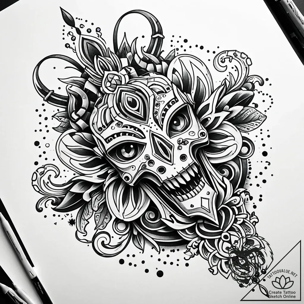 This piece is ideal for someone who appreciates detailed artistry and carries a strong sense of self. Its intricate nature would look impressive on the forearm or calf, allowing the fine details to be appreciated, or as a striking statement on the back between the shoulder blades, drawing the eye into its complex design.