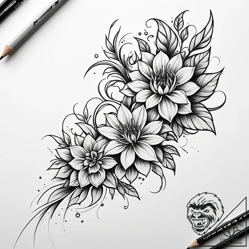 Flowers have long symbolized beauty, growth, and renewal, and this design speaks to the resilience of the spirit and the blossoming of inner strength. The flowing, organic lines evoke a sense of harmony and connection to nature, perfect for someone who embodies grace and tenacity.