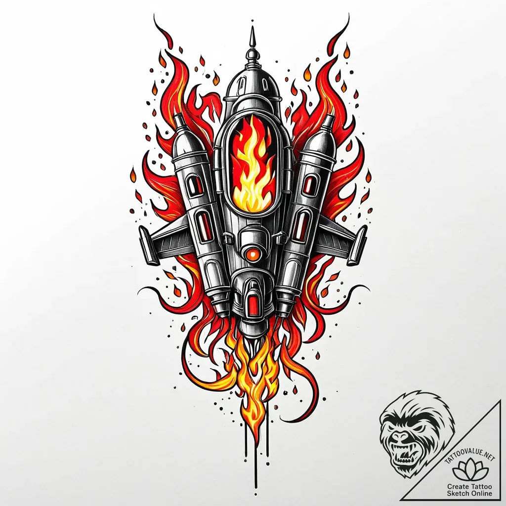 A jetpack symbolizes ambition, aspiration, and the drive to ascend beyond limitations. Coupled with the fiery eruption, it signifies passion, transformation, and a bold pursuit of goals. This tattoo can embody a spirit of fearless exploration and a relentless push towards the future.