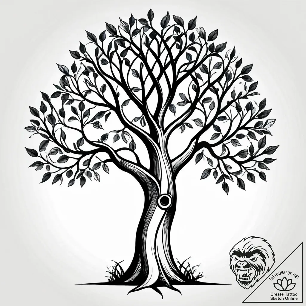 This Neo-Traditional design artfully blends the organic flow of Art Nouveau with the bold graphic quality of illustrative tattooing. The tree's thick, foundational branches symbolize the strength of p