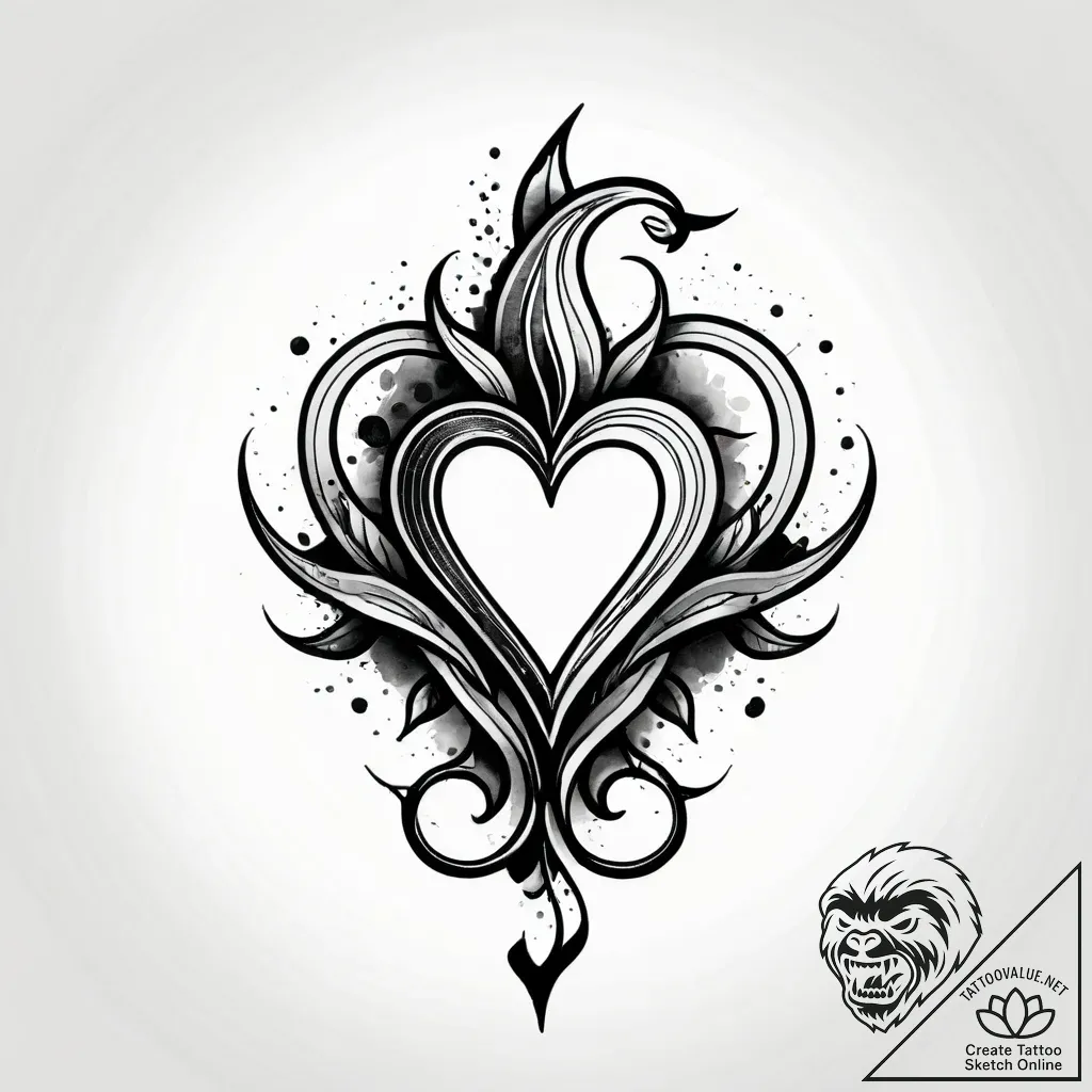 The heart, a timeless symbol of love and passion, is here amplified by the dynamic, flowing elements that suggest the powerful, often overwhelming nature of deep affection. This design can represent an all-consuming love, a fierce protectiveness, or the vibrant, life-giving force of genuine connection. It speaks to a soul that embraces passion fully, unafraid of its intensity and beauty.