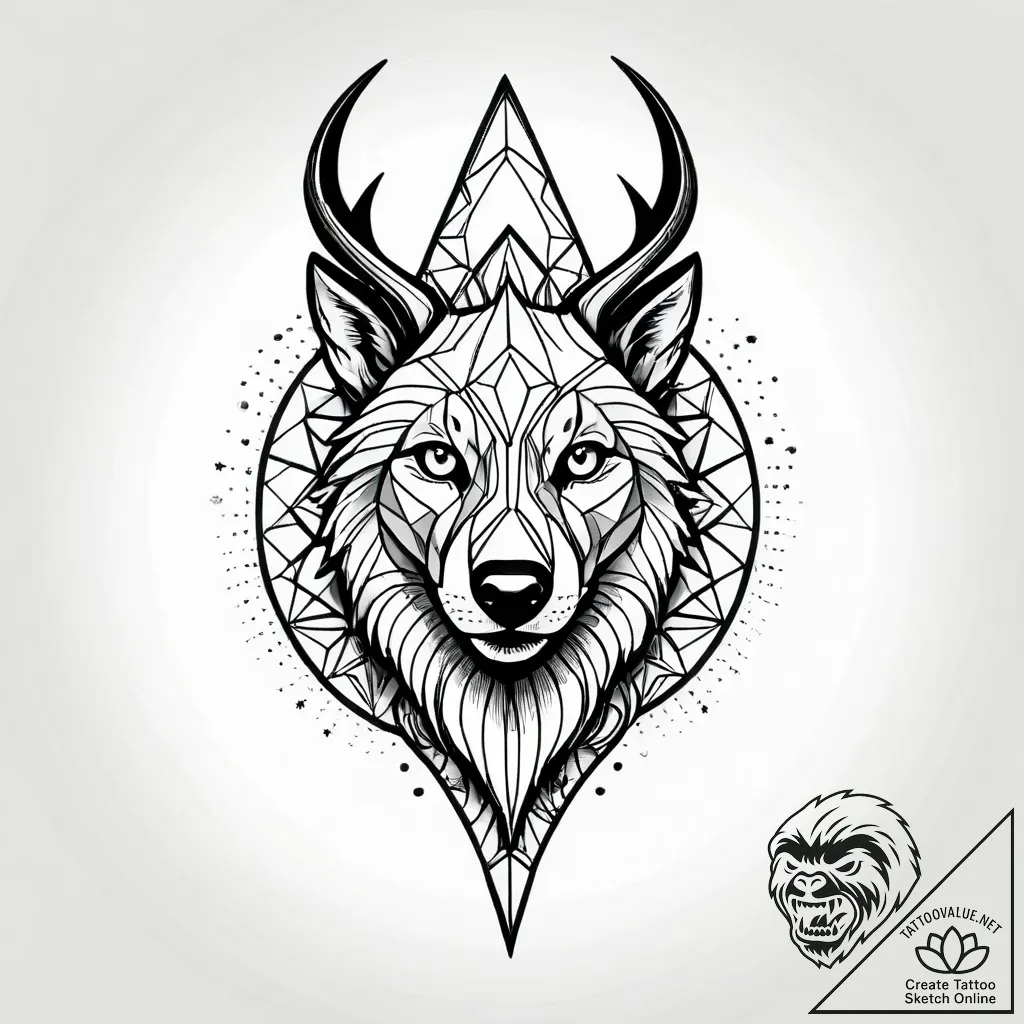 This striking tattoo sketch masterfully blends the raw power of a wolf's head with an intricate, crystalline structure, creating a visual paradox of organic wildness and geometric precision. Rendered