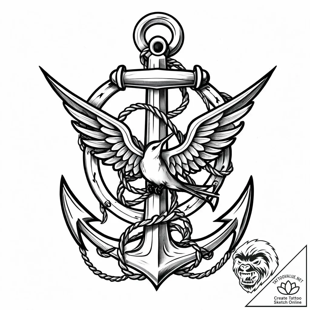 • Final Prompt for AI (EN): tattoo sketch, tattoo design, isolated tattoo sketch on pure white background, tattoo design, zodiac sign, classic sailor jerry style anchor, swallow, tattoo drawing outline, clean white paper, isolated, realistic black and grey tattoo, photorealistic detail, soft shading, bold outlines, thick lines, heavy linework, black and white sketch, monochrome, greyscale tones