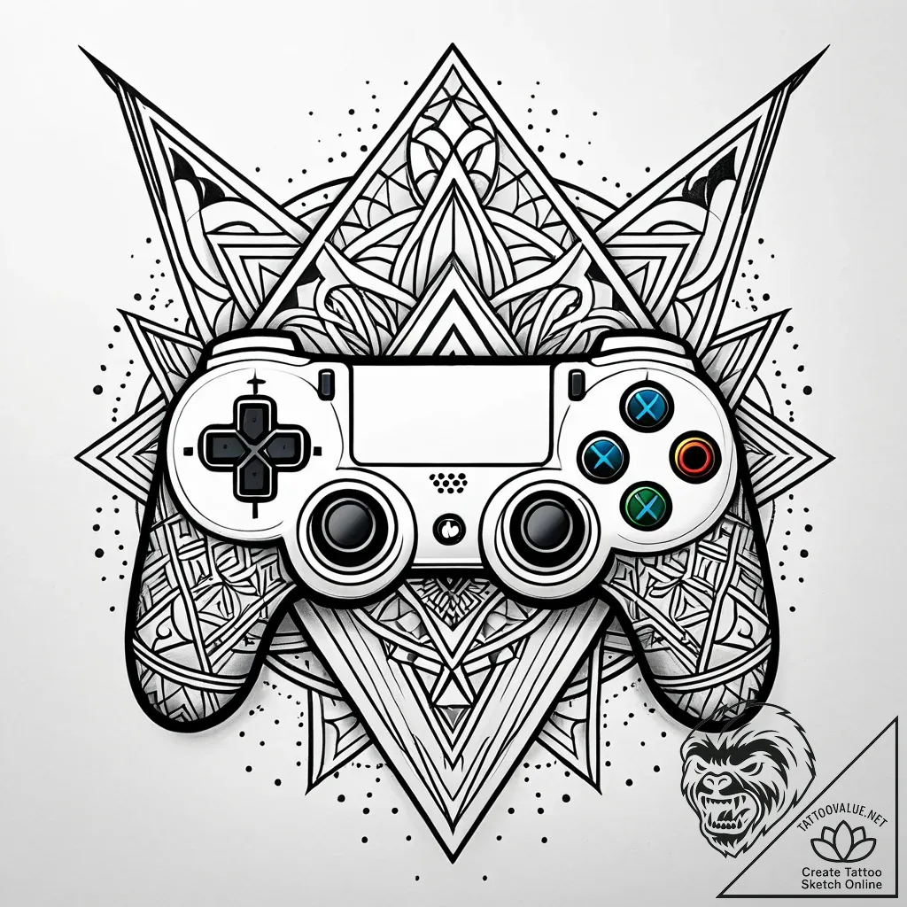 This design is ideal for individuals who embrace their passion for gaming while seeking spiritual depth and an appreciation for complex artistry. It would look impressive on the forearm or calf, showcasing the symmetry and detail, or as a statement piece on the back between the shoulder blades, allowing the geometric patterns to expand outwards.