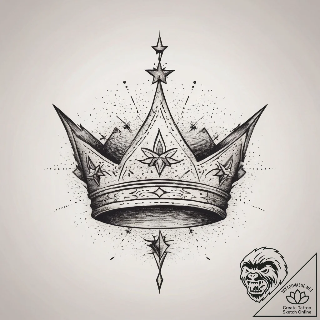 Presenting a one-of-a-kind tattoo sketch, prepared based on your request “tattoo sketch a crown made of celestial stars., ink illustration for tattoo, minimalist tattoo design, simple clean lines, tiny tattoo, subtle design, bold outlines, thick lines, heavy linework, on a clean white paper, isolated, sepia tone sketch, vintage paper look” at tattoovalue.net.
