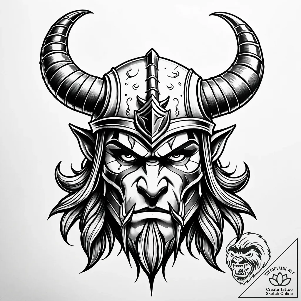 The horned helmet, a classic symbol of warriors and mythological figures, signifies power, protection, and a connection to the untamed forces of nature or the supernatural. This tattoo design can embody traits such as resilience, ferocity, courage, and a spirit of defiance against adversity, making it a powerful statement of inner strength.