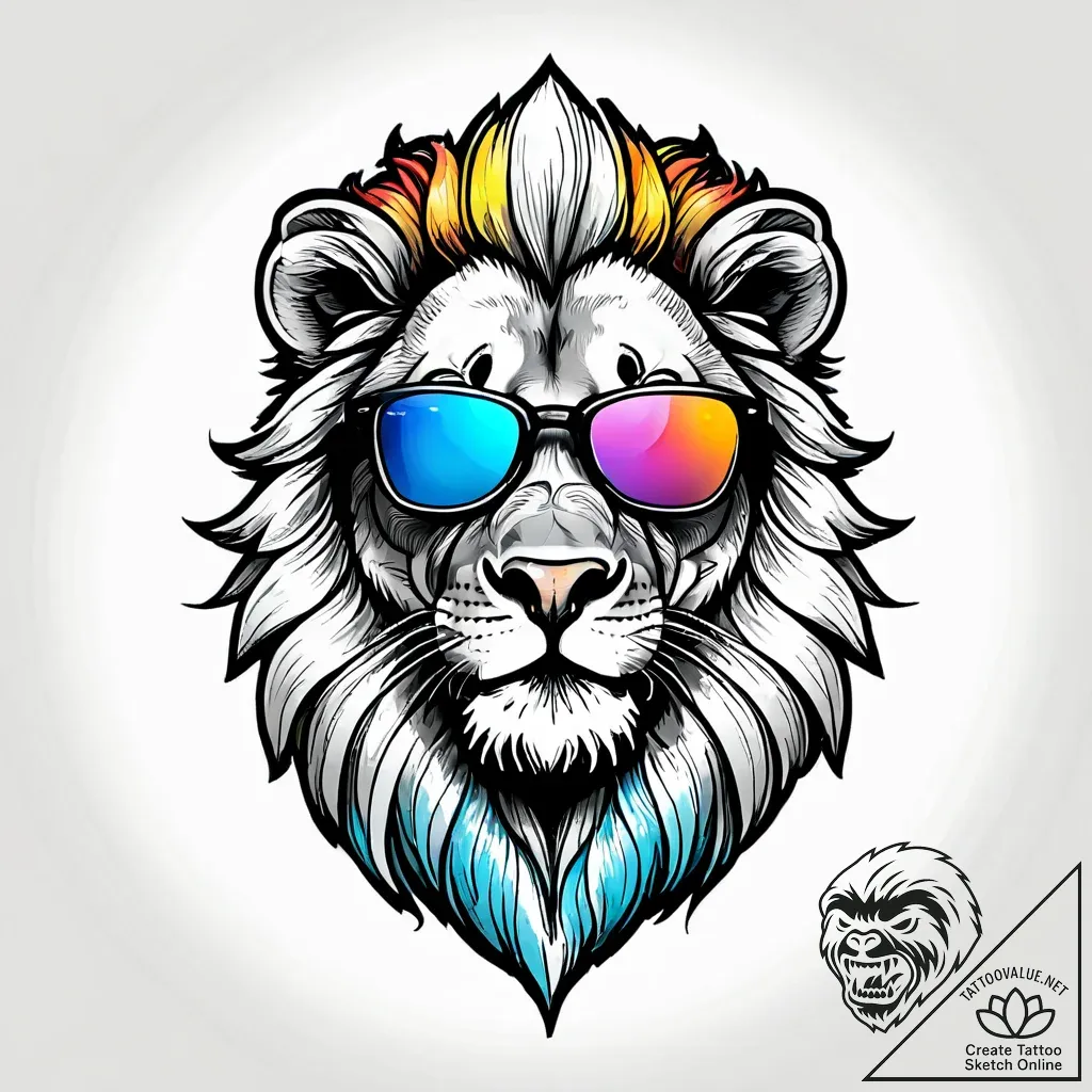 This design is perfect for individuals who embody confidence, charisma, and a bold, individualistic spirit. It would look striking as a statement piece on the forearm, allowing the vibrant colors of the sunglasses to pop, or on the calf, offering a substantial canvas for the detailed rendering of the lion's mane.