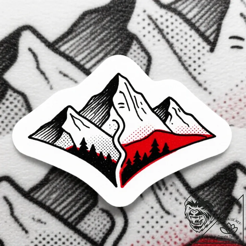 - Original User Request (RU): tattoo sketch a minimalist mountain range split between partners., tattoo flash sheet design, minimalist tattoo design, simple clean lines, tiny tattoo, subtle design, soft whip shading, pepper shading, smooth dot shading, black and red ink, red accent, dramatic two-tone, on a clean white paper, isolated