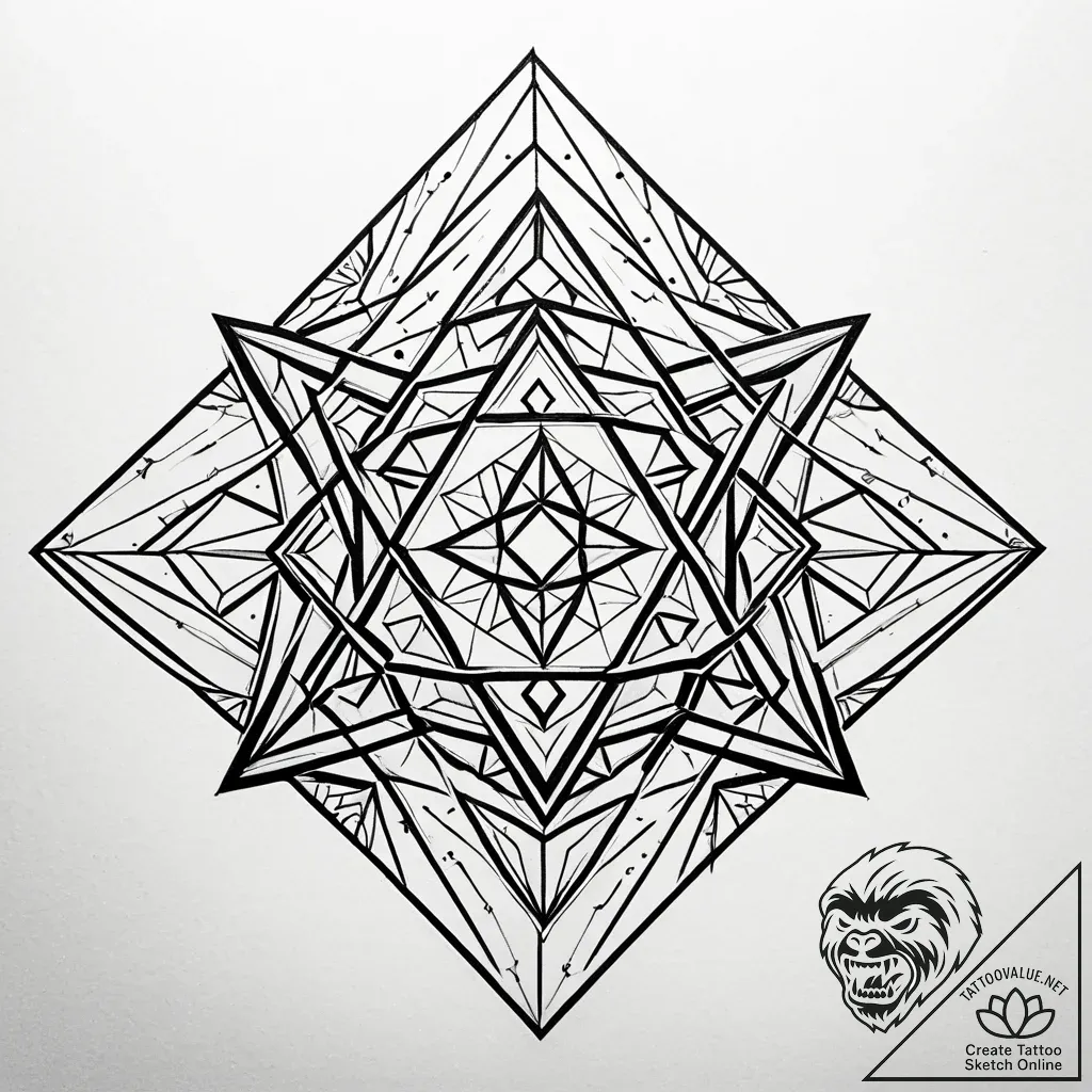 This tattoo sketch embodies the essence of logic, reason, and the pursuit of knowledge, represented by its complex geometric structure. It symbolizes a mind that thrives on problem-solving, critical thinking, and finding order within chaos. Such a design can represent a deep appreciation for intellectual pursuits, a quest for truth, or the ability to navigate life's challenges with clarity and precision.