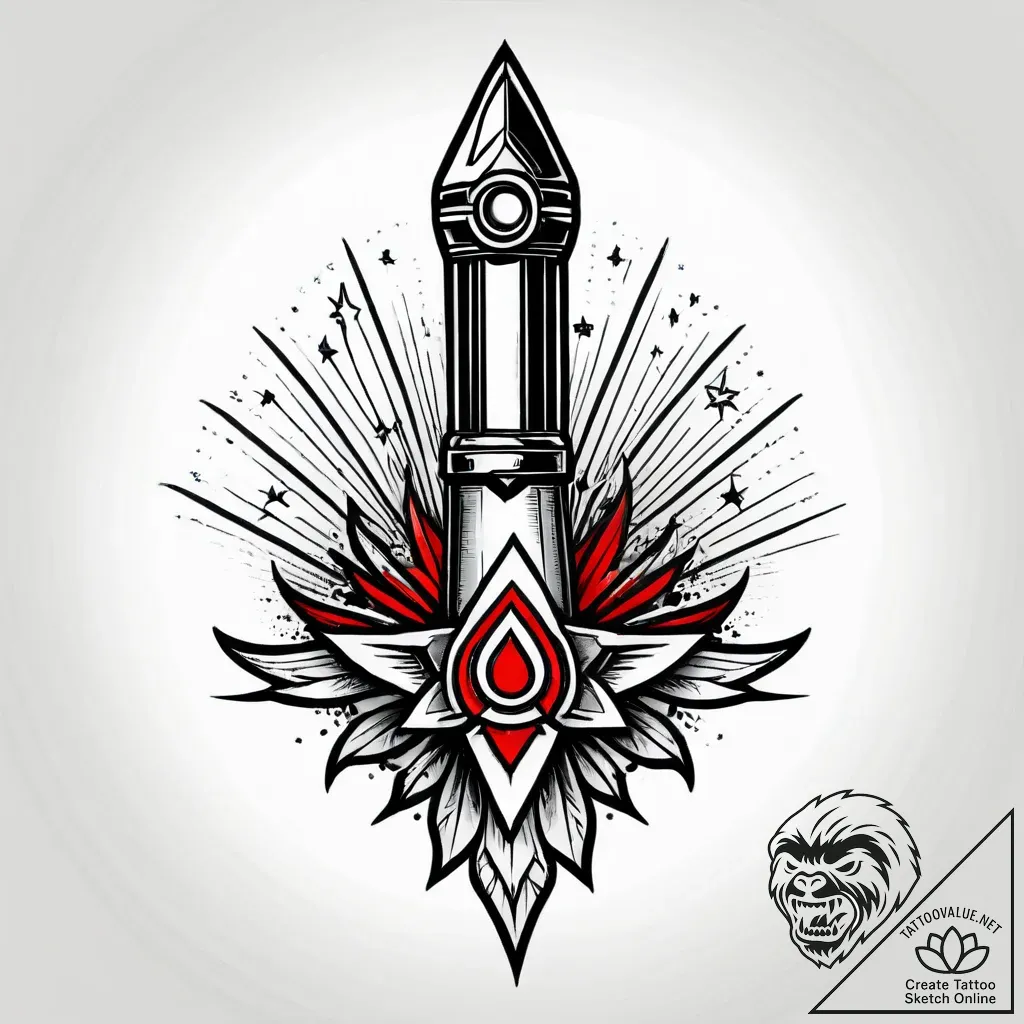 The tactical flashlight symbolizes clarity, guidance, and the ability to illuminate the unknown, cutting through confusion and doubt. The radiating lines and red accents suggest power, passion, and resilience, making it a potent symbol for those who navigate challenges with determination and a sharp intellect.