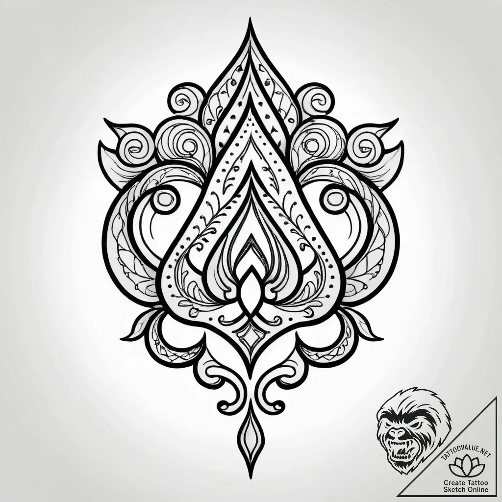 This neo-traditional sketch blossoms like a fantastical, stylized bloom, intricately woven with Art Nouveau curves and delicate dotwork shading. Its crisp, illustrative linework creates a sense of elegant opulence, with smooth gradients that hint at depth and movement within the static form.