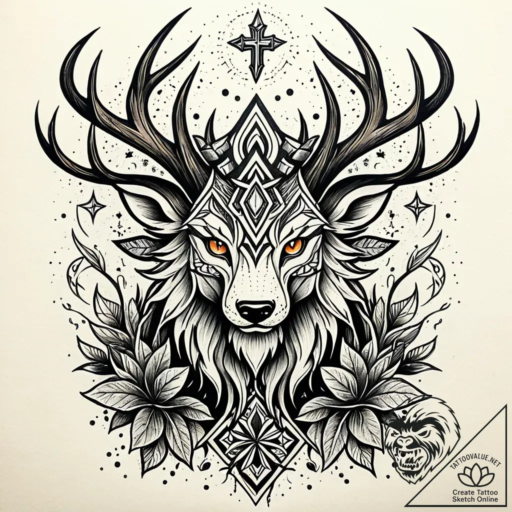 This design embodies the spirit of the forest and the wild heart of a guardian. The stag symbolizes grace, intuition, and the cyclical nature of life and death, while the ornate markings suggest ancient wisdom and spiritual connection. This tattoo is for those who resonate with the untamed spirit, possess keen intuition, and carry a deep respect for the natural world and its hidden mysteries.