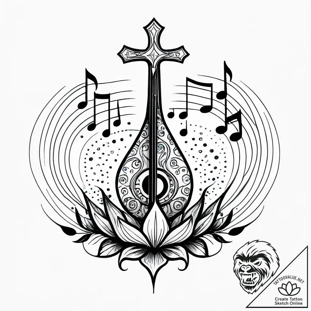This sketch is ideal for individuals who identify with the progressive and artistic spirit of Aquarius, or those who find solace and inspiration in music. It would be particularly striking on the forearm, allowing the intricate details to be admired, or on the calf, creating a dynamic visual flow that mirrors the pouring water and musical notes.