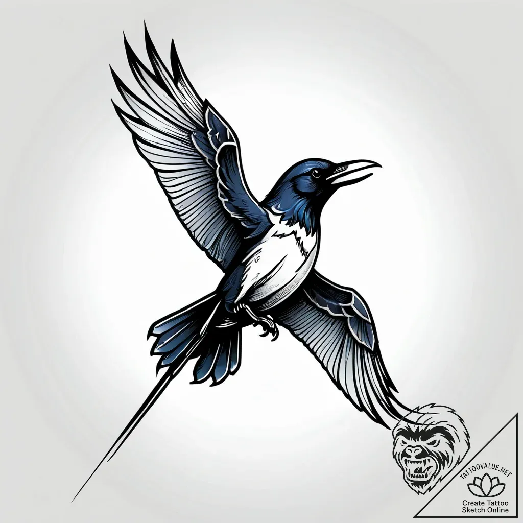 This sketch is ideal for individuals drawn to the darker, more symbolic aspects of nature and mythology. It would look striking on the forearm, allowing the dynamic flight of the raven to be a constant focal point, or on the back between the shoulder blades, creating a sense of expansive freedom and power.