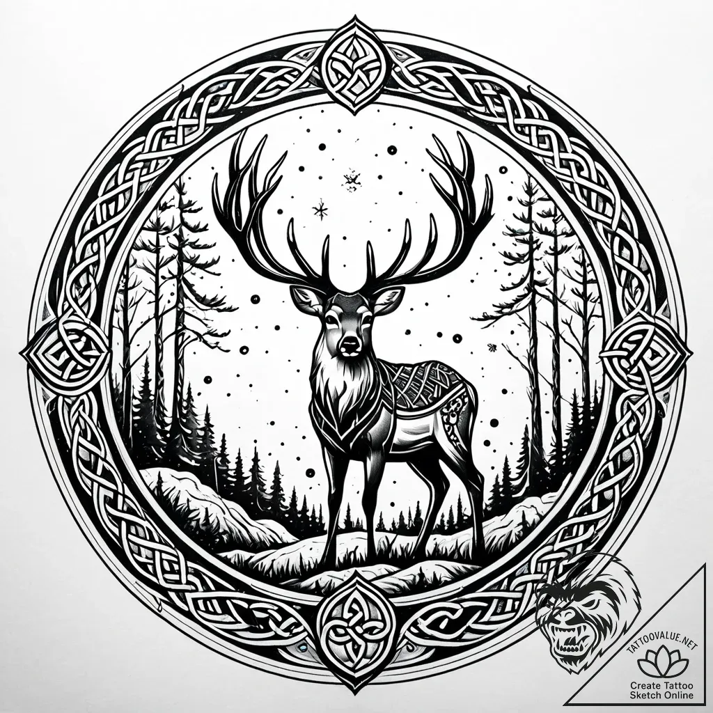 Tattoo sketch, celtic forest with deer and ar… – style Jaeger Simple – tattoo sketch (20.12.2025 20:56)