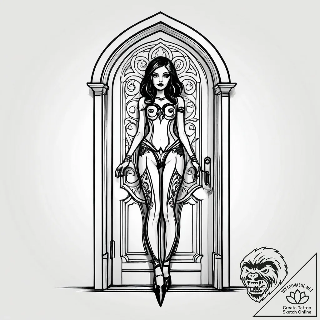 This sketch is ideal for individuals who are drawn to the mystical, the daring, and possess an adventurous spirit, embodying themes of curiosity and self-discovery. It would look particularly striking as a full back piece, allowing the intricate details of the door and figure to unfold, or as a prominent thigh piece, emphasizing the figure's elegant form.