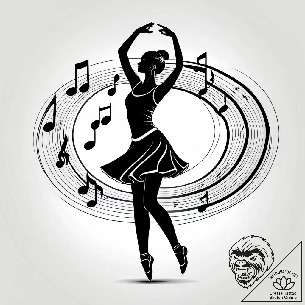 This design embodies the profound connection between dance and music, symbolizing harmony, passion, and the expression of the soul. The dancer represents dedication, discipline, and the pursuit of artistic perfection, while the swirling notes signify creativity, inspiration, and the ephemeral beauty of sound. This tattoo can be a powerful declaration of a love for the arts, a reminder of the freedom found in creative expression, or a tribute to the transformative power of rhythm and melody.