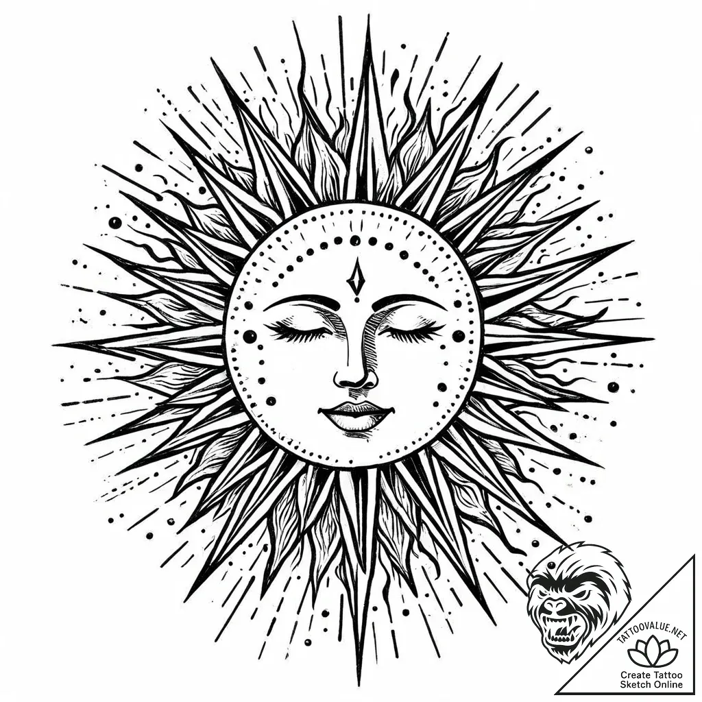 This radiant design is ideal for individuals who exude warmth and possess an optimistic outlook. It would look impressive on the forearm, allowing the intricate details to be easily admired, or as a striking centerpiece on the back between the shoulder blades, symbolizing the sun's central role in life. The sketch-like aesthetic also lends itself well to the calf, offering a dynamic and visually engaging placement.