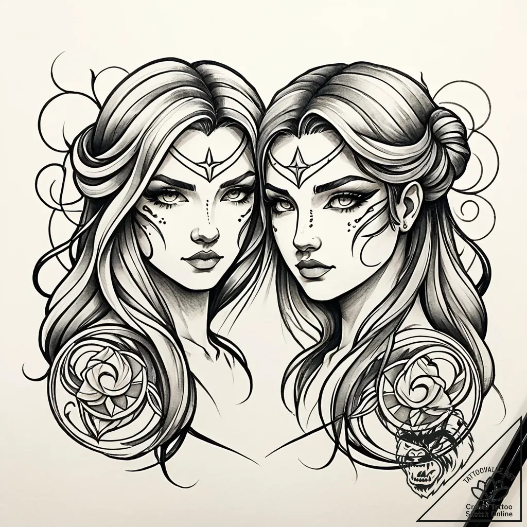 This sketch is ideal for individuals who resonate with the Gemini zodiac, or those who appreciate the beauty of duality and connection. It would look striking on the forearm, allowing the viewer to engage with the intricate details, or as a statement piece on the calf, where the flowing lines can accentuate the natural curve of the leg.