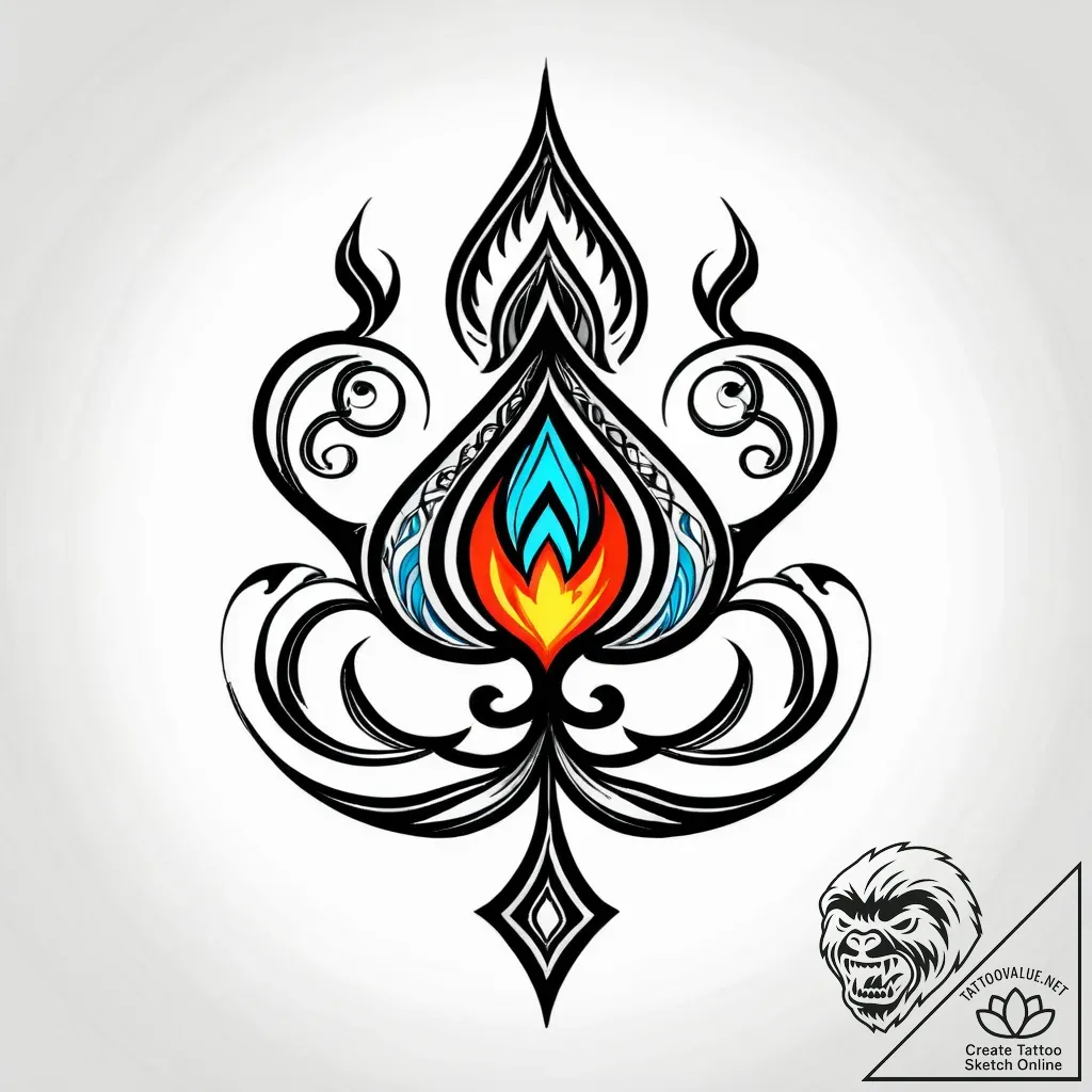 The flames symbolize passion, transformation, and rebirth, representing an individual's intense emotions and their journey through change. This design can embody a fierce, expressive personality, highlighting traits of courage, creativity, and an unyielding spirit.