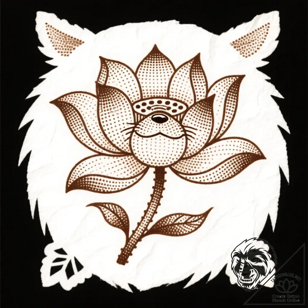 - Original User Request (RU): tattoo sketch, oogway with lotus flower, spiritual nature tattoo, tattoo sketch design, on a clean white paper, isolated, dotwork tattoo style, stippling art, pointillism, geometric dotwork, fine lines, delicate linework, single needle style, sepia tone sketch, vintage paper look