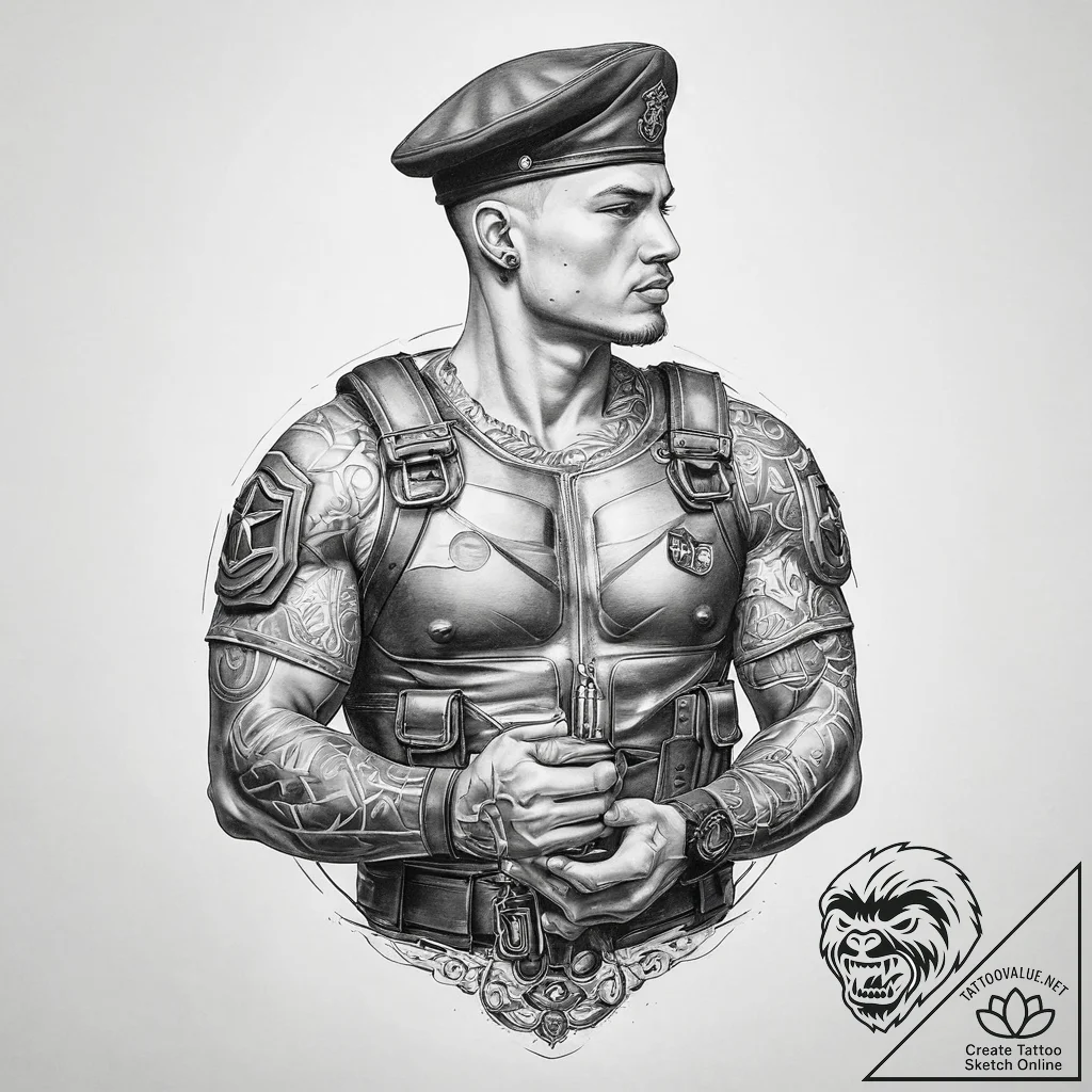 - Original user request (RU): tattoo sketch soldier with a lock, tattoo sketch design, black and white sketch, monochrome, greyscale tones, linework tattoo style, clean fine lines, single needle line art, outline tattoo, on a clean white paper, isolated, fine lines, delicate linework, single needle style