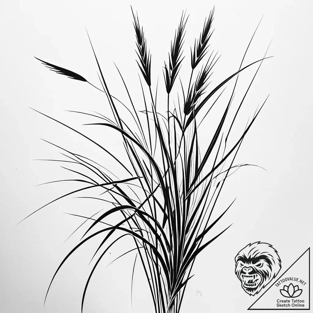 • Final Prompt for AI (EN): tattoo sketch, tattoo design, isolated tattoo sketch on pure white background, tattoo sketch, tall reeds, gentle breeze, subtle shading, natural tattoo, artistic tattoo sketch, fine lines, delicate linework, single needle style, clean white paper, isolated, black and white sketch, monochrome, greyscale tones, blackwork tattoo style, dark art, bold black areas, heavy black ink