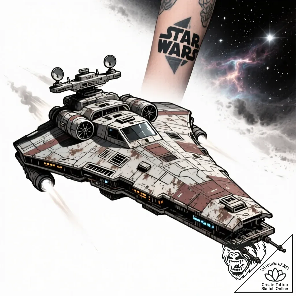 The Millennium Falcon symbolizes resourcefulness, resilience, and the triumph of the underdog, embodying the spirit of those who dare to defy overwhelming odds. A tattoo of this legendary ship can represent a personal journey of overcoming challenges, a love for adventure, or a deep admiration for the courage and determination to forge one's own path.